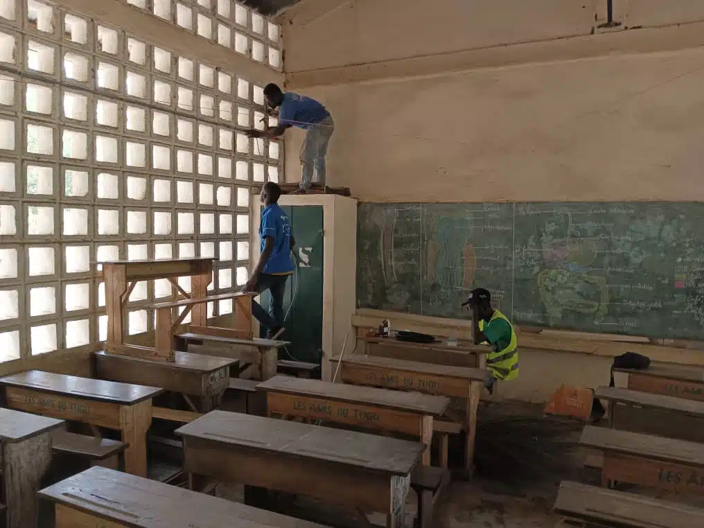 The school building will therefore house the solar panels and the technical room to accommodate a rack pre-wired with a 6 KVA victron inverter and 10 KWh of pylontech lithium batteries.